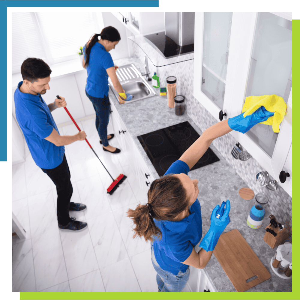 Removal of dust, debris, and final touches after a renovation or build.
